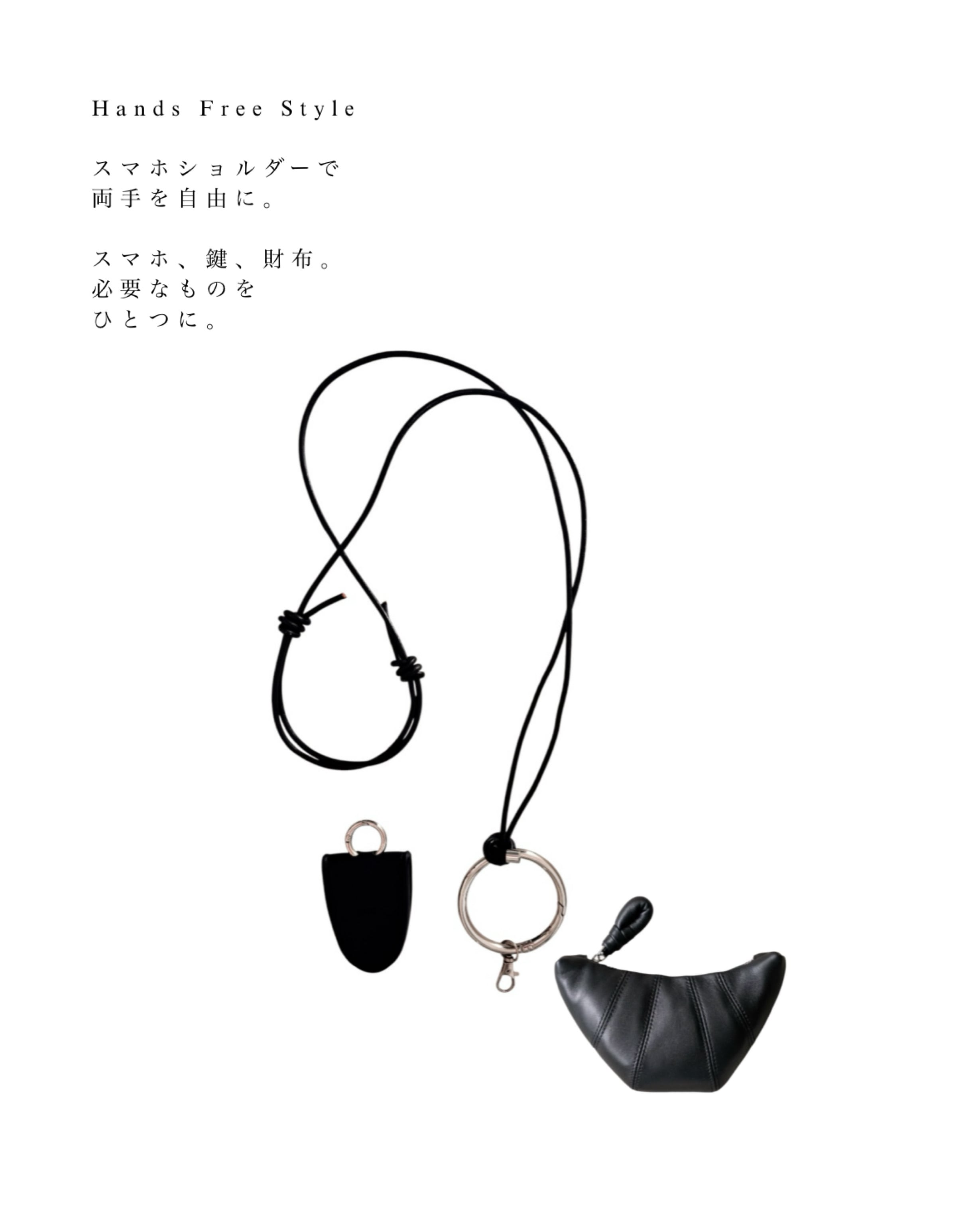 スマホを、身につける。 バッグを持たない日。 ちょっとそこまでの外出。 子どもと公園に行くとき。 旅行やお出かけの日。 スマホと 必要なものだけ さっと持って出られたら。 そんなときに便利な スマホショルダーです。 スマホケースに ストラップホルダーを挟むだけで 簡単に取り付けできます。 肩にかけておけば バッグの中を ごそごそ探すこともなく 必要なときに すぐ手に取れる位置に。 会計のときも。 荷物を持つときも。 両手があくので お出かけが少し楽になります。 Zaeショルダーは 巻き付けた結び目がアクセントになったデザイン。 リング部分に 立体感のあるポイントを。 コーディネートにも 自然に溶け込みます。 別ページで販売しているポーチを 取り付けることで お金や鍵、リップなど 必要なものをまとめて 持ち歩くことも。 自分好みにカスタムして 使えるショルダーです。 また、ショルダーには マグネット式サングラスホルダーが付属。 サングラスを さっと掛けられる仕様に。 使わないときは タグのようなアクセントとして さりげなく馴染みます。 シンプルで 主張しすぎないデザイン。 『 Zae . / Shoulder 』 ⸻ Material PU Leather / Stainless Color Black Length 【Neck】 首かけ用ショートサイズ 約85cm(長さ調整なし) 【Shoulder】 斜めがけ用ロングサイズ 結び目で長さ調整可能 ⸻ 【セレクトアイテム】 ショルダーに取り付け可能な セレクトアイテムを別ページにてご用意しています。 刻印アイテムをプラスしたり、 付属アイテムをセレクトすることで もっと便利に、あなただけの仕上がりに。 ▶︎ 選べる刻印プレート 無地プレート / énuプレート / お好きな文字を刻印 https://simple02shop.base.ec/items/119685385 ▶︎ 刻印ホルダー スマホとショルダーをつなぐ、オリジナルホルダー https://simple02shop.base.ec/items/112740575 ▶︎ アタッチメントポーチ 人気No.1。ショルダーに付けて小物をひとまとめ。 https://simple02shop.base.ec/items/126355389 ショルダーにプラスすることで、 統一感のある、すっと整った印象に。 ⸻ 【ご利用について】 ・本商品はショルダー本体のみの販売です。 ・各セレクトアイテムは別ページでの販売となります。 ・商品画像は使用イメージを含みます。 ⸻ Instagram @___.enu 新作やコーディネートは Instagramでもご紹介しています。 https://www.instagram.com/___.enu ⸻ 【ラッピング】 ラッピングは別ページにてご用意しています。 ご希望の方は、そちらをカートに追加のうえ、 ご一緒にご購入ください。