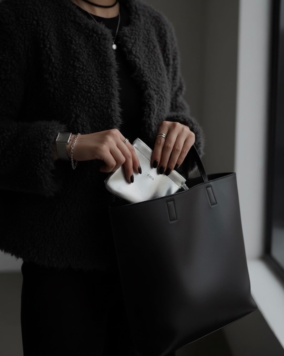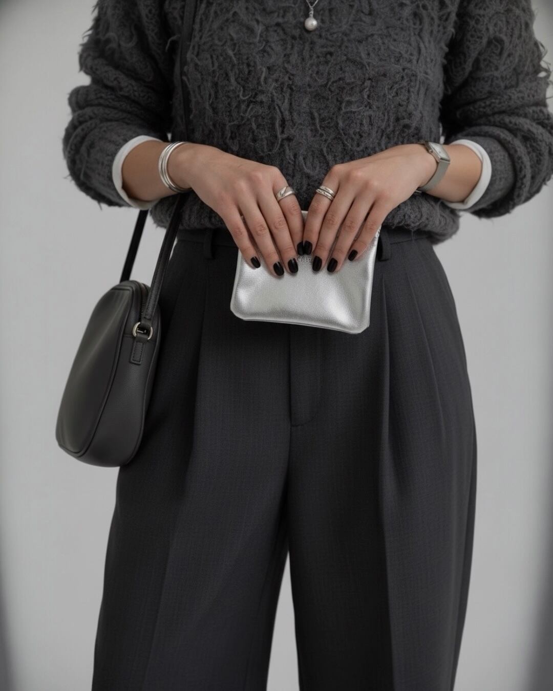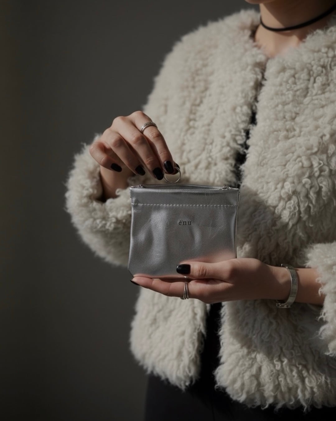 シルバーフレームポーチ。