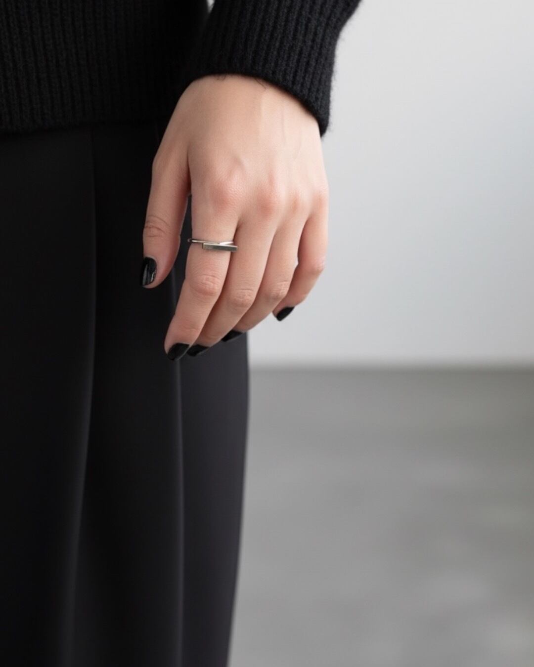 直線的なバーが印象的なミニマルリング。