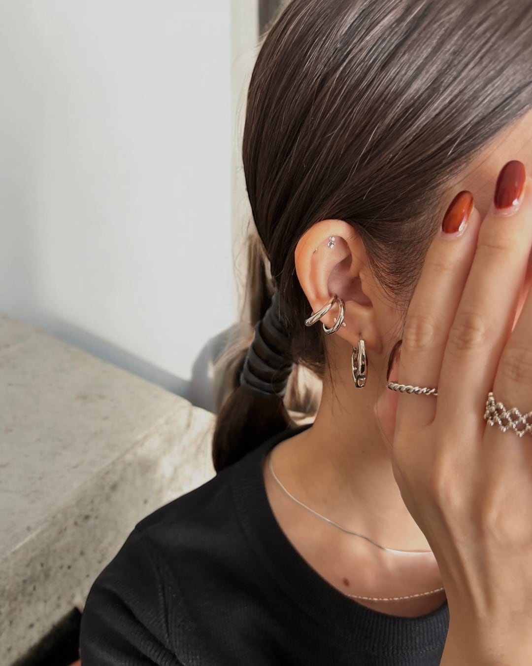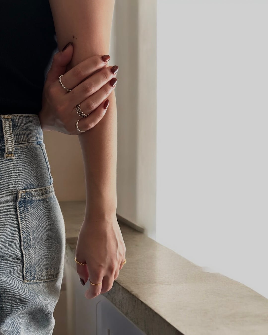 さりげなく個性を添えるシルバーリング。